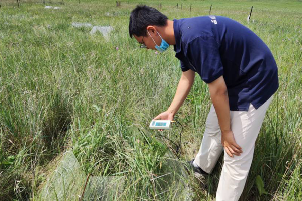 团队成员测量草原地温