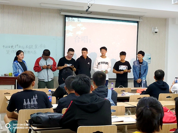 当晚,负责人石娟以“奋斗·筑梦”展开话题,徐徐展开一幅中华儿女自强不息、爱国报国的壮丽画卷。通过回顾伟大祖国70年的沧桑巨变,同学们感受到革命先辈们以血肉之躯筑强国之梦的坚毅与热忱,体会到如今幸福生活的来之不易。活动中,薛丁丁、马永龙、玉苏普喀迪尔·孜米尼、同雨涛、胡桑源等同学踊跃登台,用歌声唱响自己对祖国母亲赤诚的爱。1902班的全体同学更是激情热血难抑,全体起立高歌《光荣与梦想》,宣告我们这一代青年人的历史责任与时代担当,表达对祖国的最庄严的承诺和最美好的祝福。