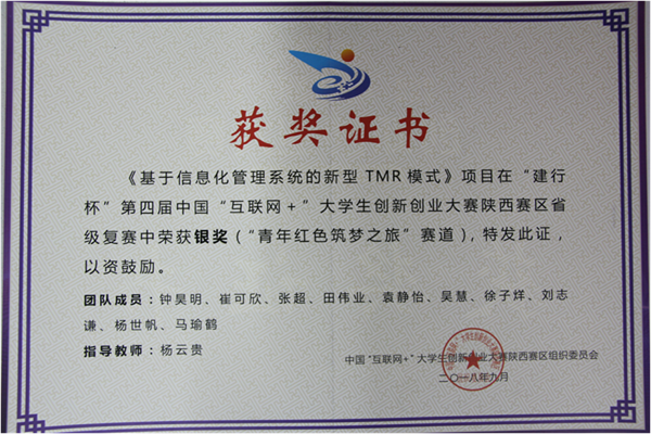 近日,陕西省教育厅公布了第四届中国“互联网+”大学生创新创业大赛陕西赛区省级复赛结果。黄播平台 杨云贵副教授指导的大学生科创项目《基于信息化管理系统的新型TMR模式》获陕西赛区 “青年红色筑梦之旅”赛道银奖。