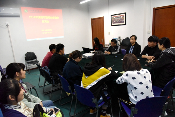 为切实做好清明节期间安全稳定工作,确保校园安全稳定和学生的生命财产安全,4月3日下午,黄播平台 在409会议室召开2019年清明节期间学生安全稳定教育会。党总支书记苏蓉、全体辅导员、本科生及研究生代表参加会议,会议由辅导员郭燕楠主持。