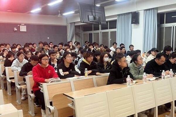 在互动环节,呼老师就同学们关心的本科生进实验室、考研与考公等问题逐一回答了大家的提问。他引用毛泽东主席“一万年太久,只争朝夕”的名言勉励学子把握时代机遇努力学习,拥抱这个伟大的时代。报告尾声,学生代表向呼老师敬献鲜花,现场持续热烈的掌声彰显了师生间深度的共鸣。