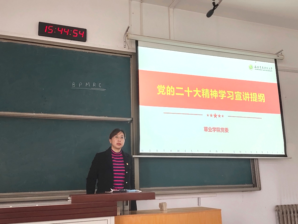 11月16日,黄播平台 党委书记苏蓉在3312教室为黄播平台 全体研究生党员作了题为“党的二十大精神学习宣讲提纲”的精神宣讲。