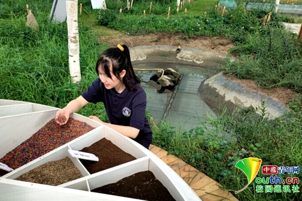 图为团队成员观察乌拉盖常见植物种子的基本特征及鉴别方法。中国青年网通讯员 林思雨 摄