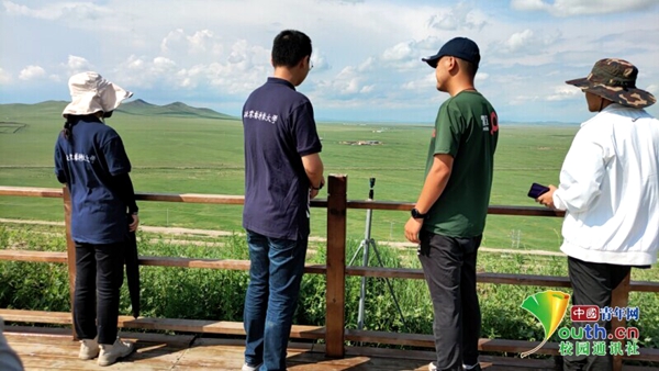 图为实践团队队长向队员介绍乌拉盖草原生态系统资源现状。中国青年网通讯员 邵梓桐 摄