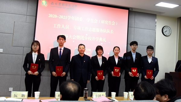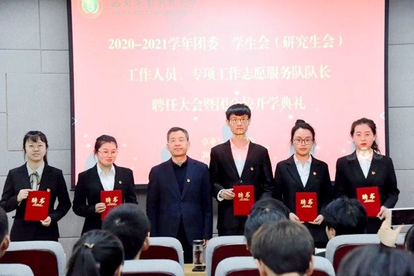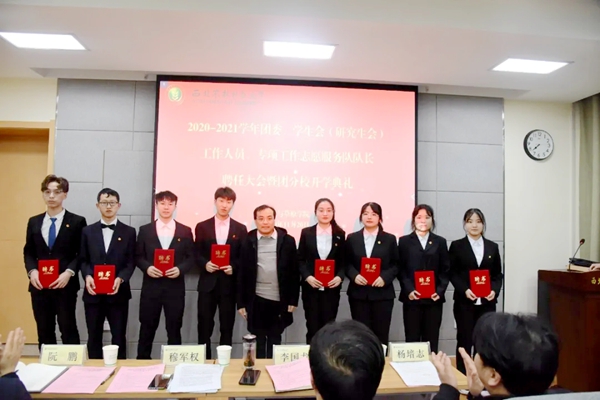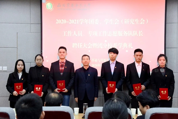 校团委副书记、马克思主义黄播平台 教授穆军全为团委各部门工作人员颁发聘书并合影