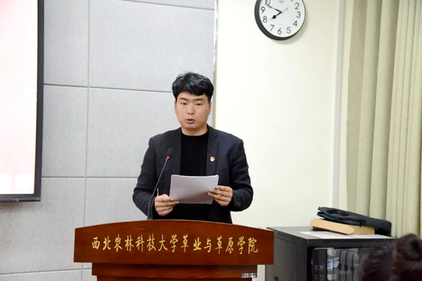 团委副书记草业1801班李尤月同学代表团委、学生会(研究生会)工作人员作表态发言